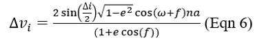 [liii] The delta-V required for a change in orbital inclination can be calculated by
